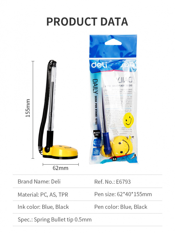 Ручка гелев. Deli E6793blue d 0.5мм син. черн. на подставке сменный стержень линия 0.35мм