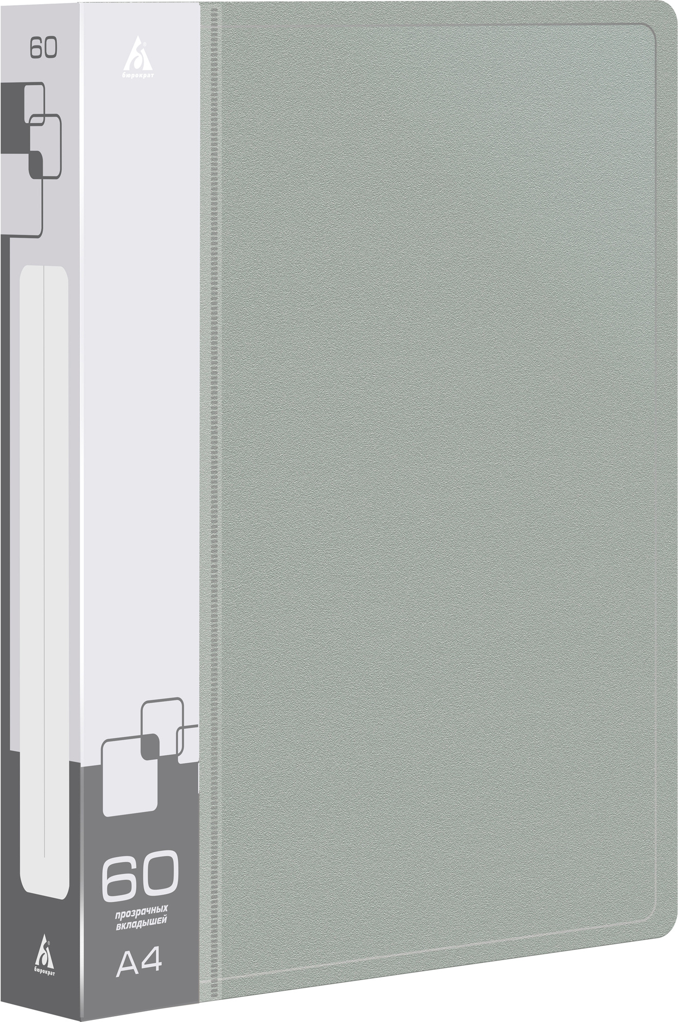 Папка с 60 прозр.вклад. Бюрократ -BPV60GREY A4 пластик 0.7мм торц.карм с бум. встав серый