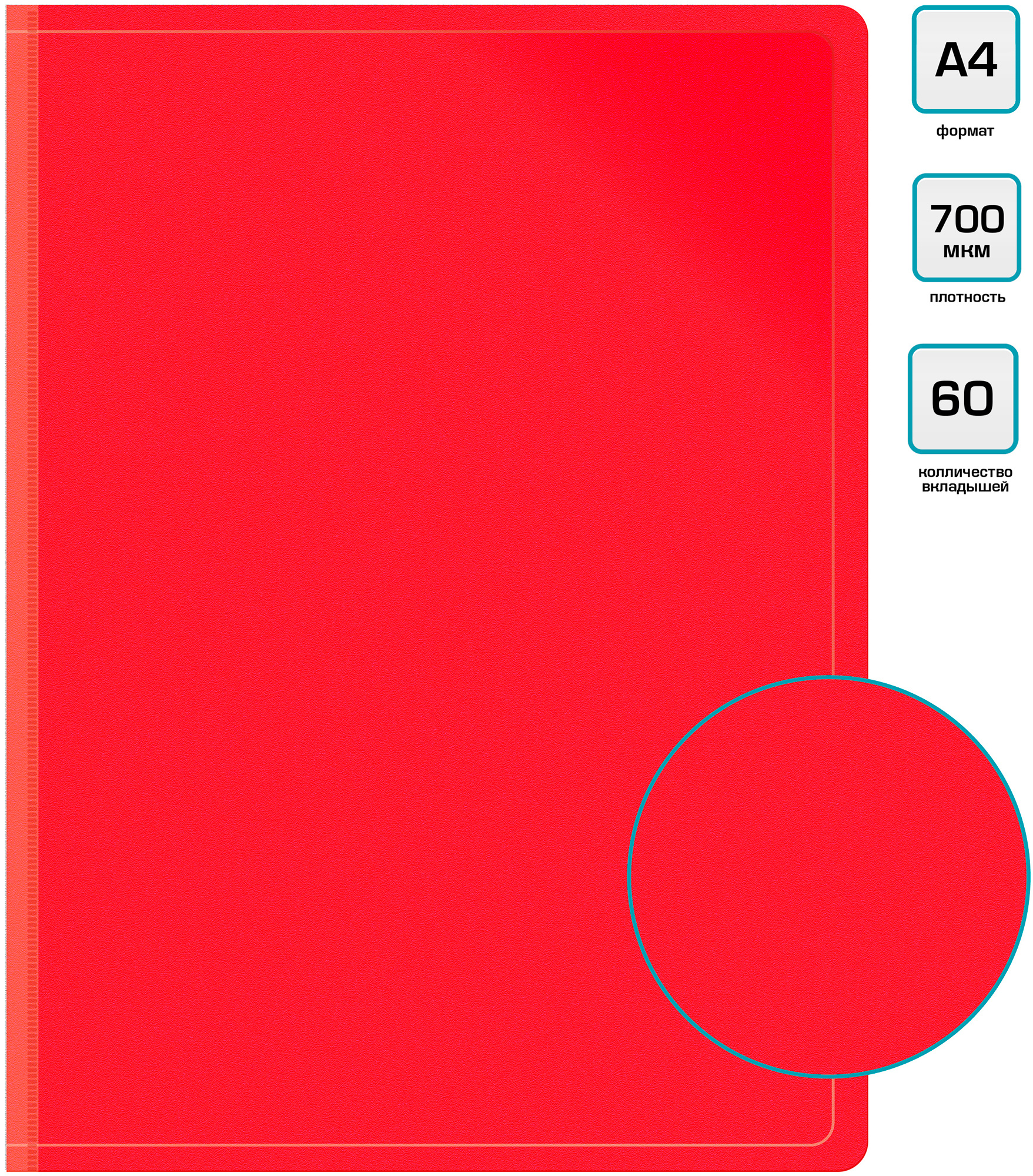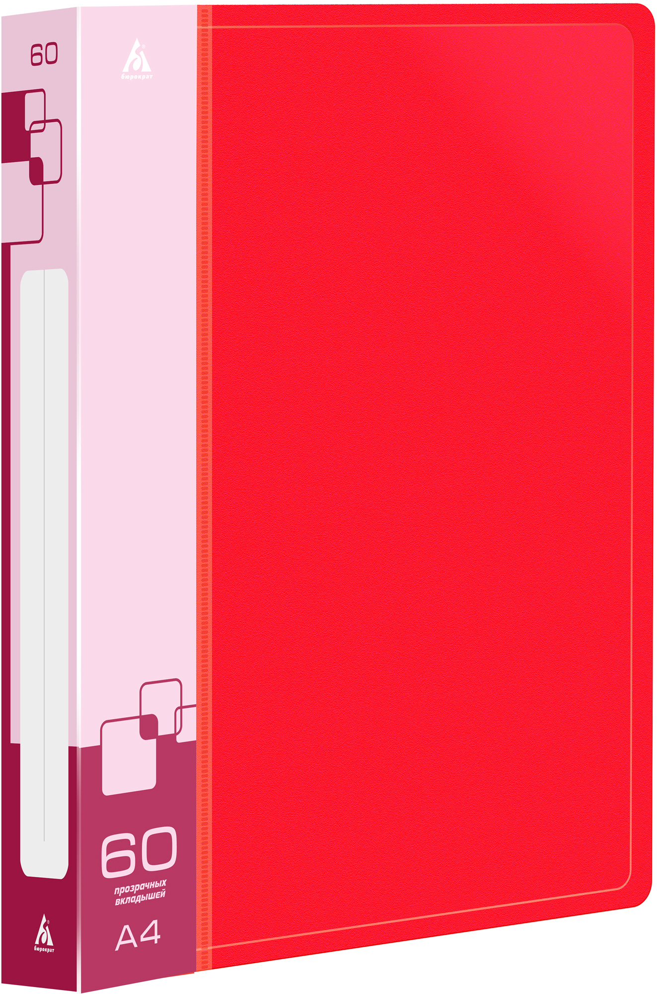 Папка с 60 прозр.вклад. Бюрократ -BPV60RED A4 пластик 0.7мм торц.карм с бум. встав красный