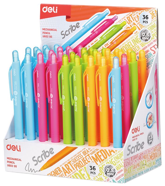Карандаш мех. Deli Scribe EU60200 0.5мм трехгран. пластик ассорти ластик