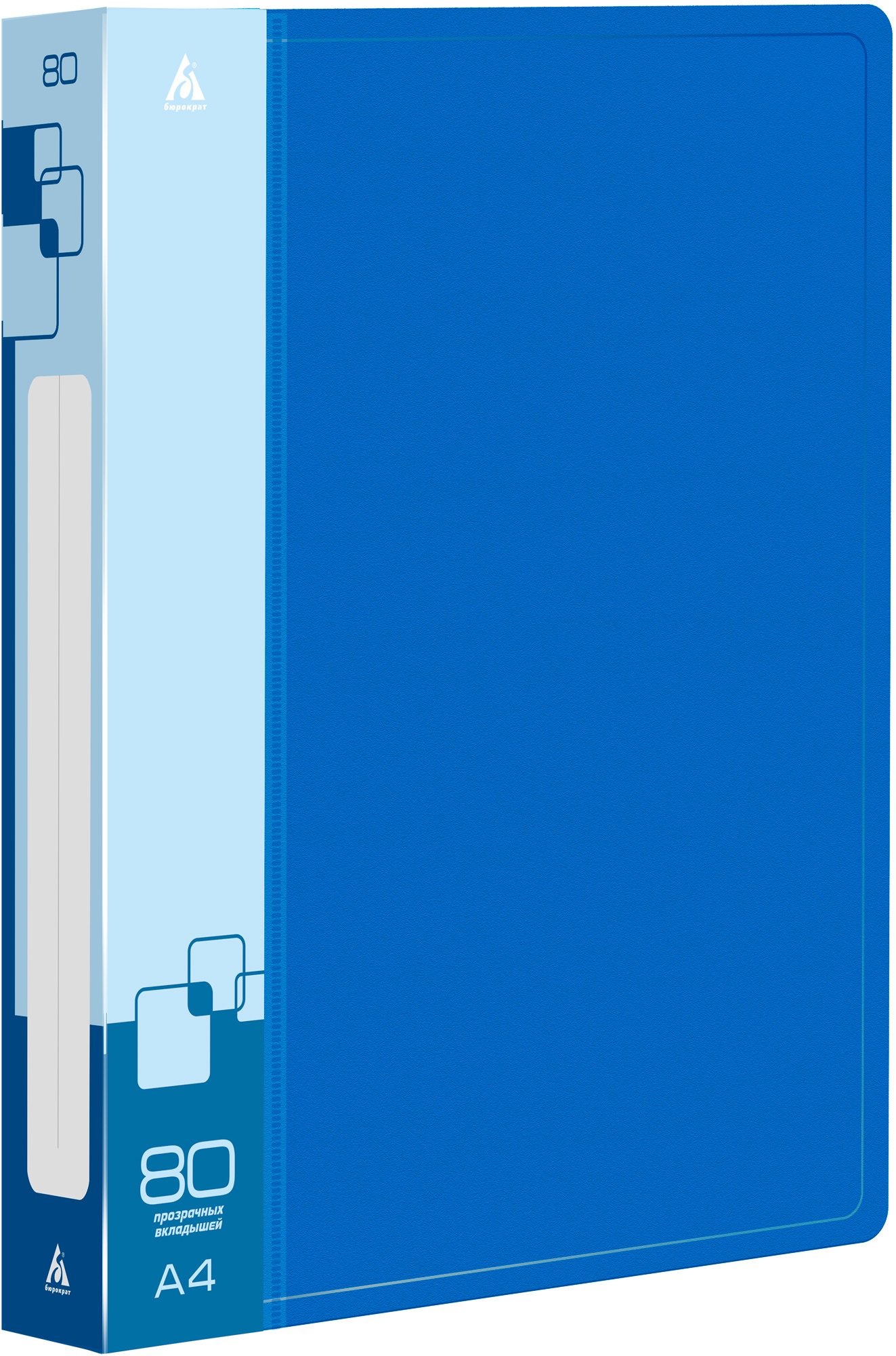 Папка с 80 прозр.вклад. Бюрократ -BPV80BLUE A4 пластик 0.8мм торц.карм с бум. встав синий
