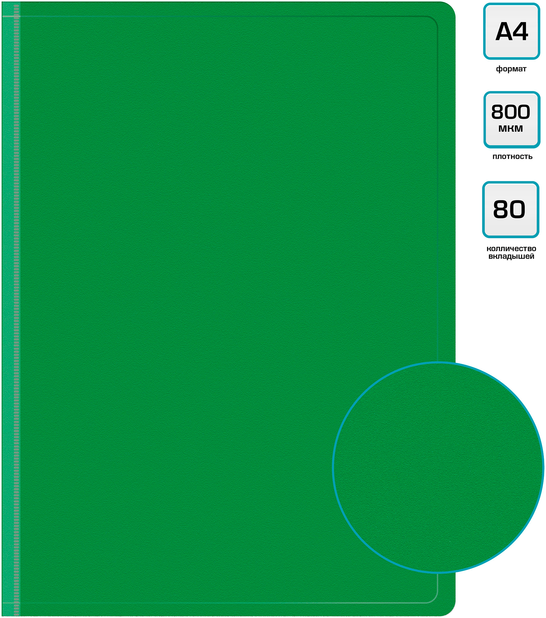Папка с 80 прозр.вклад. Бюрократ -BPV80GRN A4 пластик 0.8мм торц.карм с бум. встав зеленый