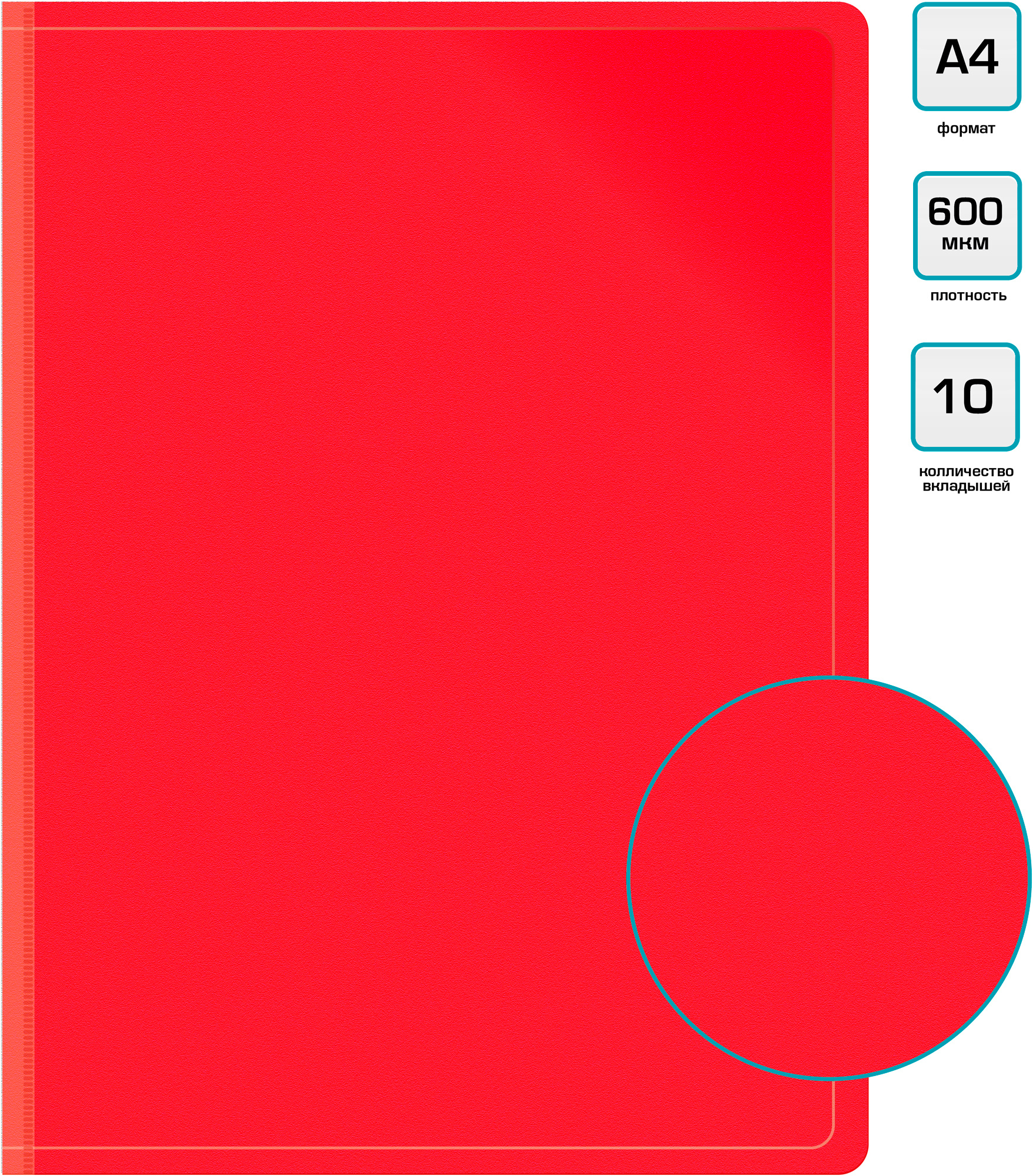 Папка с 10 прозр.вклад. Бюрократ -BPV10RED A4 пластик 0.6мм торц.карм с бум. встав красный
