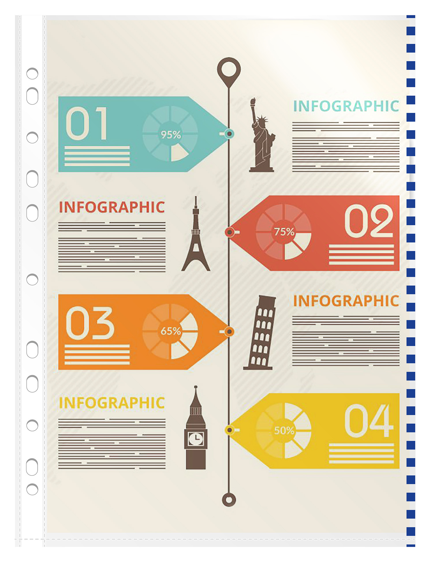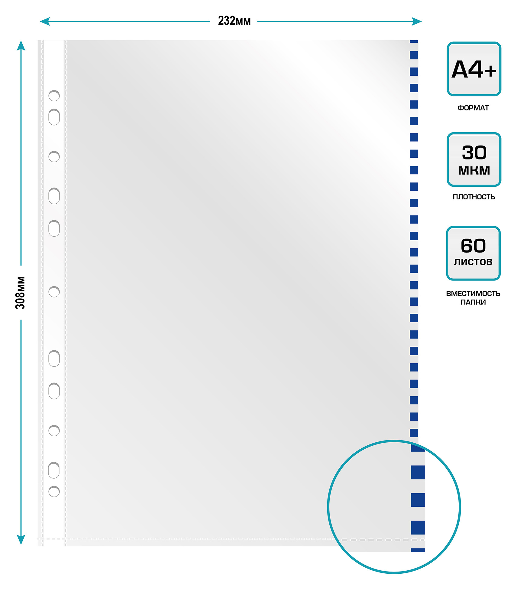Папка-вкладыш бюрократ премиум -013BKAN2BLUE глянцевые А4+ 30мкм синий край (упак.:50шт)