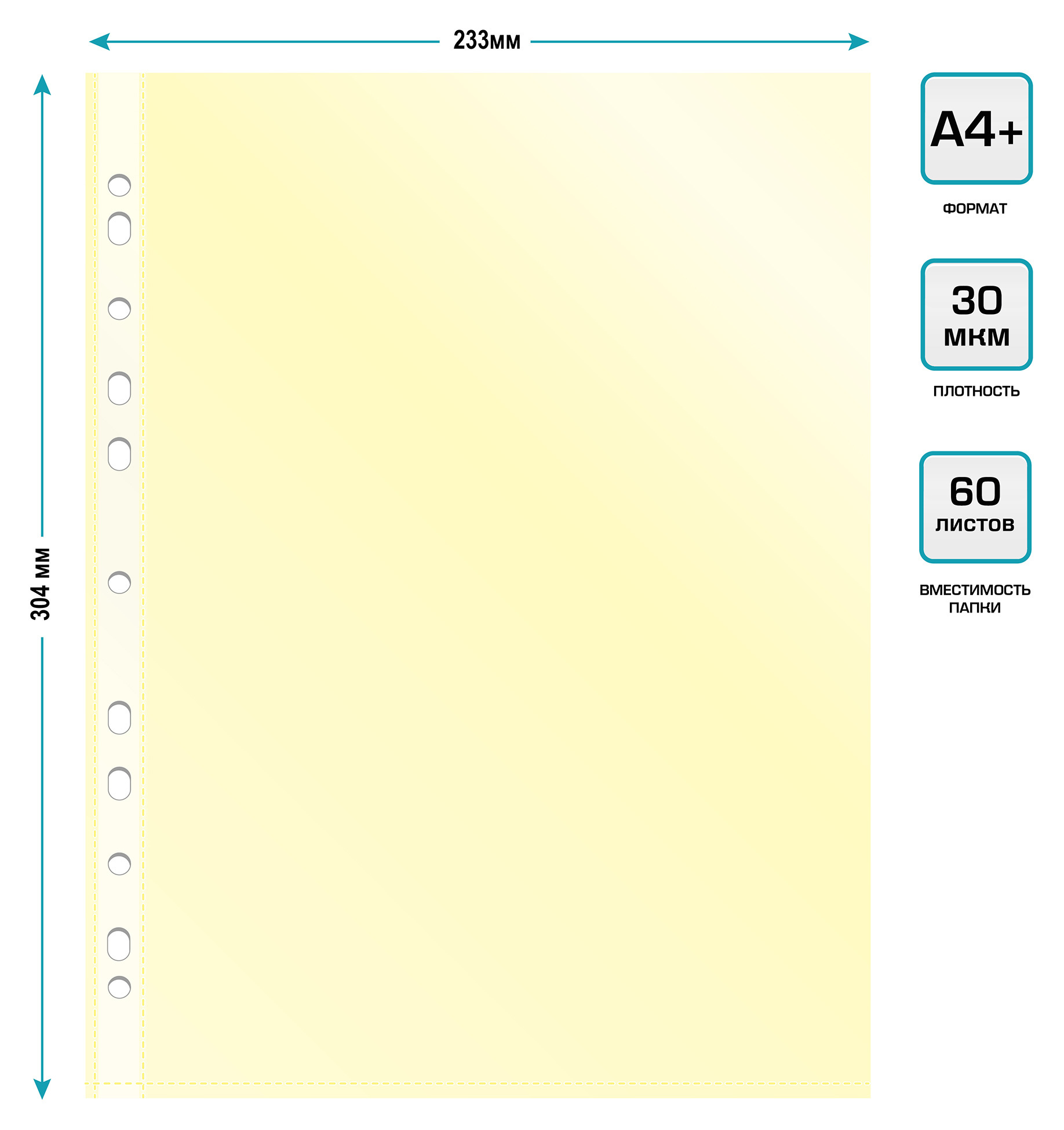 Папка-вкладыш бюрократ премиум -013COLOR ассорти глянцевые А4+ 30мкм (упак.:50шт)