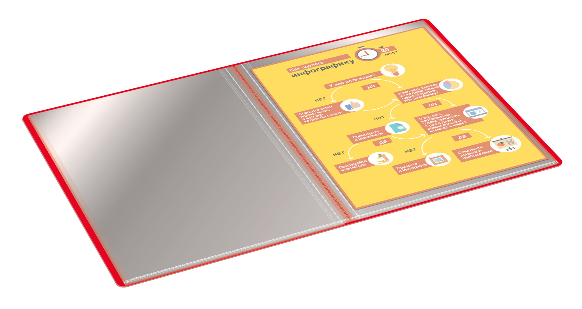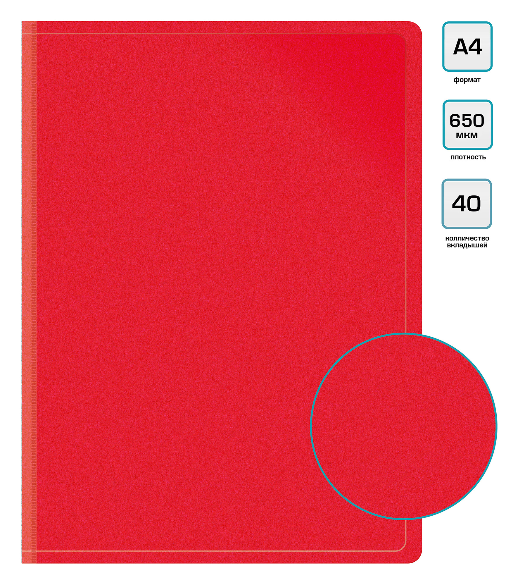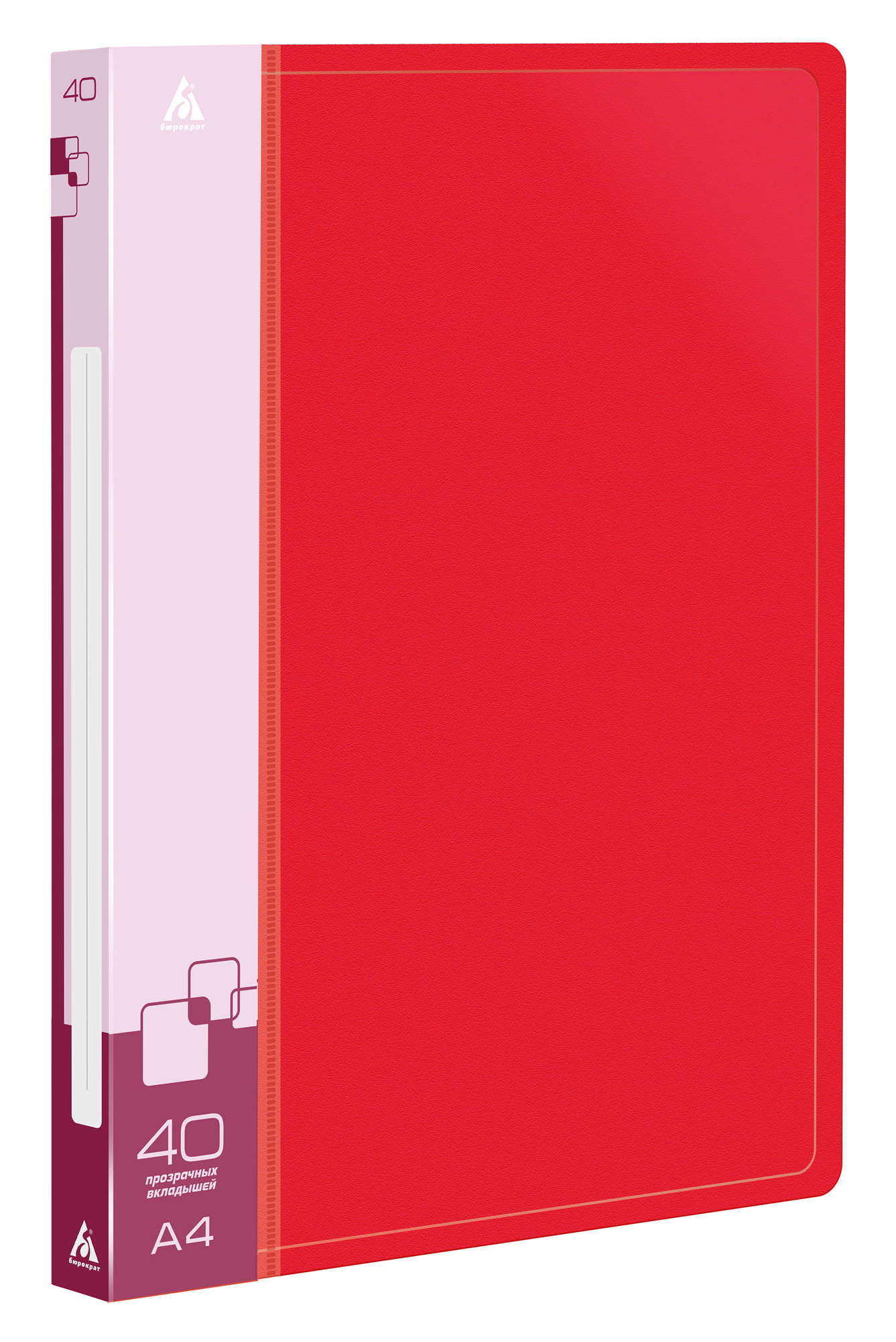 Папка с 40 прозр.вклад. Бюрократ -BPV40RED A4 пластик 0.65мм торц.карм с бум. встав красный