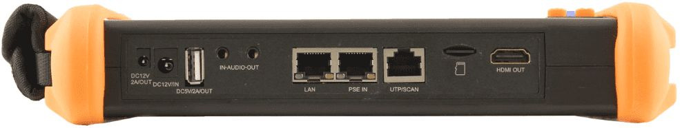 | Особенности | Разъемы: 3хRJ45, HDMI вход, HDMI выход, 2xBNC, клеммы(RS485), клеммы для щупов мультиметра, jack 3,5мм вход, jack 3,5мм выход, разъемы DC (12V/2A выход, клеммы 24V/2A, 12V вход), USB-выход(5V/2A), слот MicroSD. |