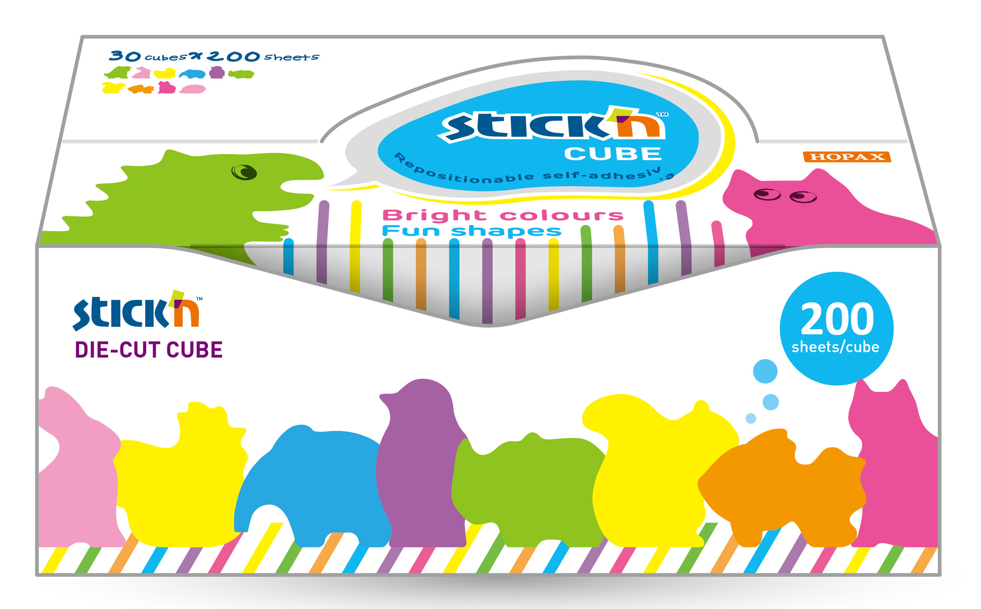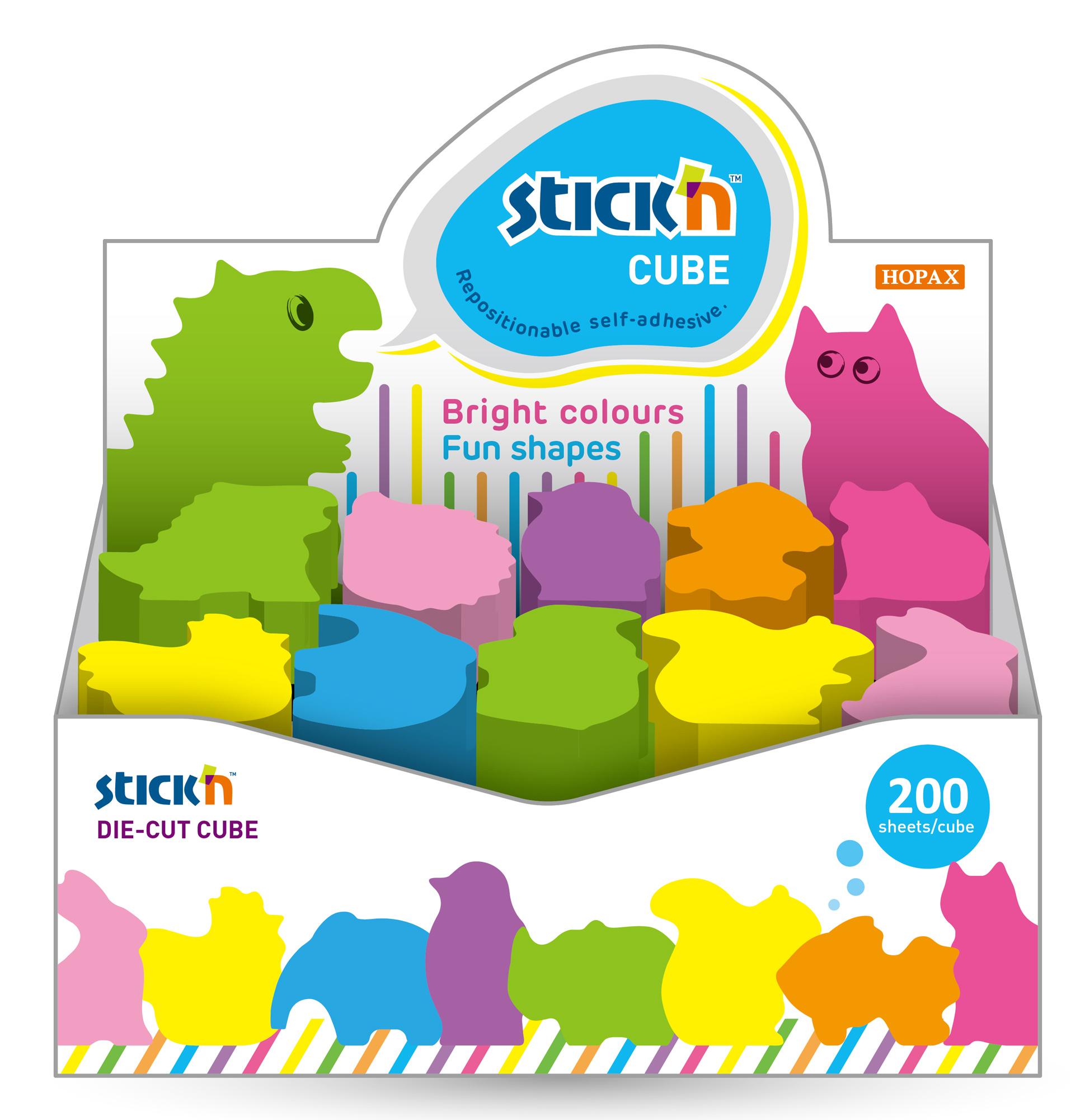 Блок самоклеящийся бумажный Stick`n 21791 64x67мм 200лист. ассорти "животные" дисплей бокс (упак.:30шт)