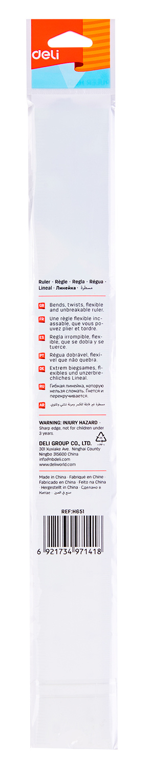 Линейка Deli EH651 пластик дл.30см ассорти гибкая/двухсторонняя шкала