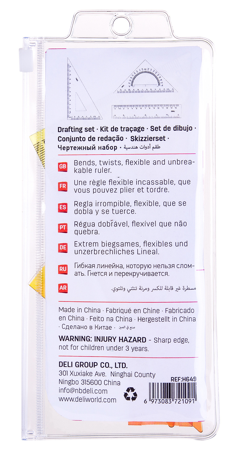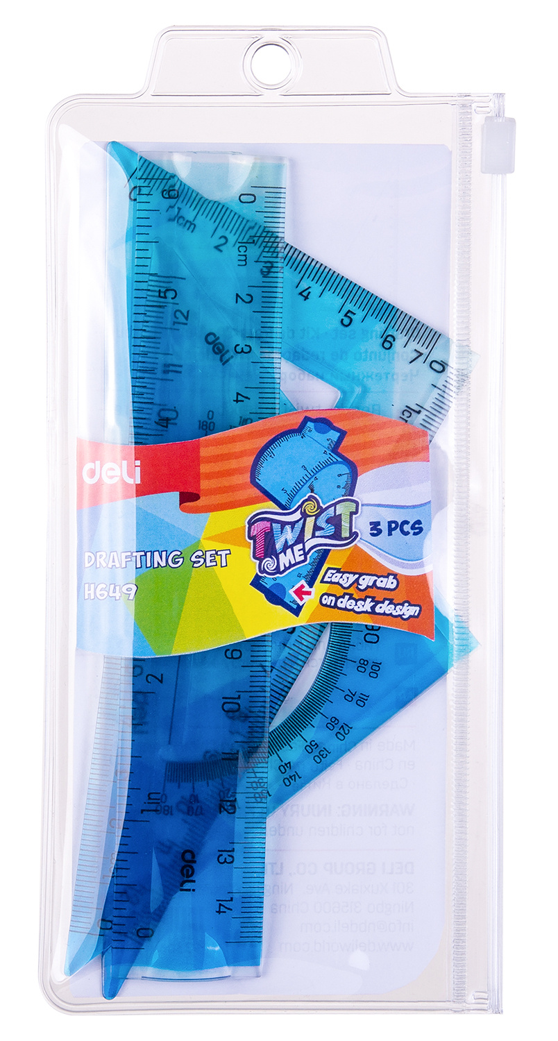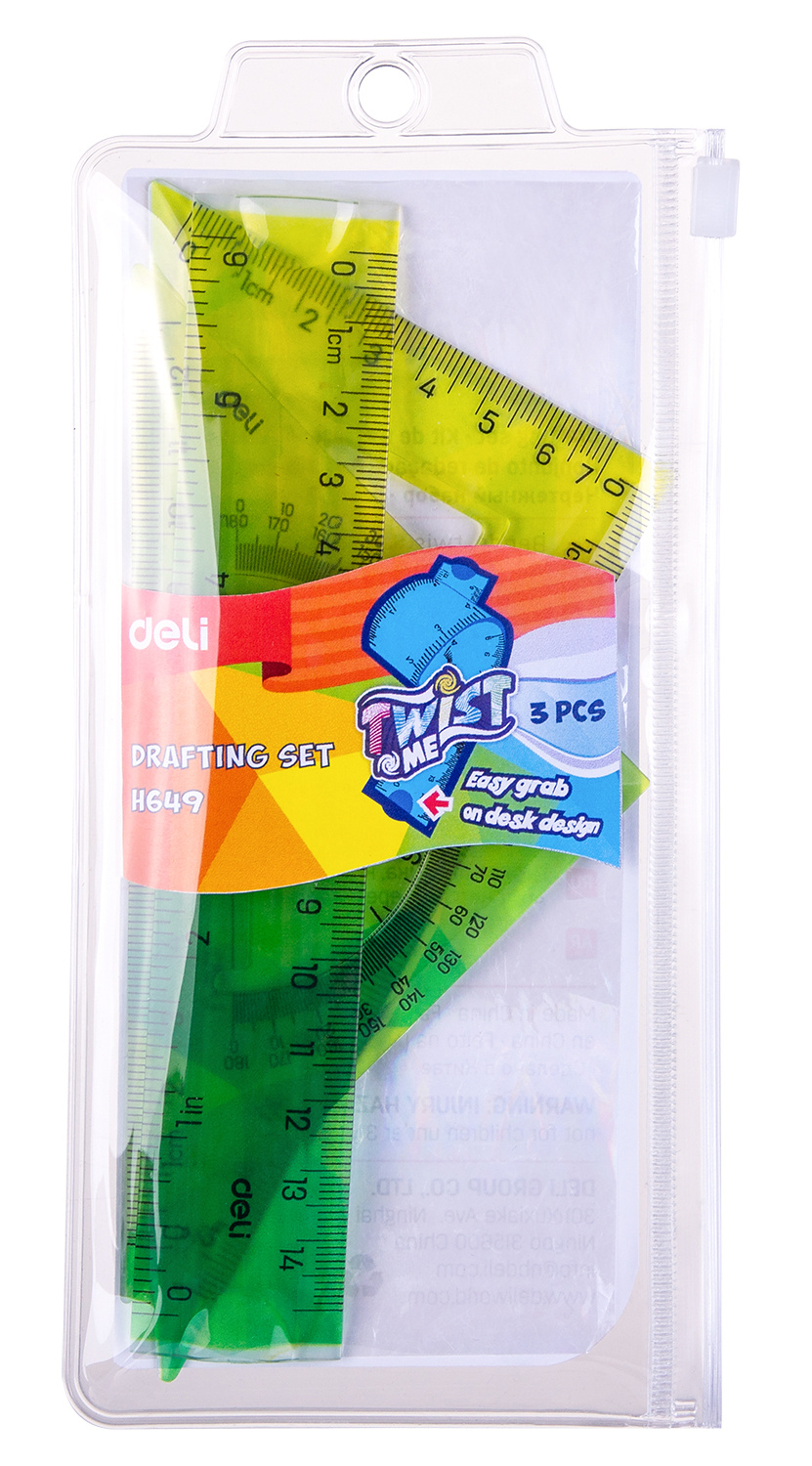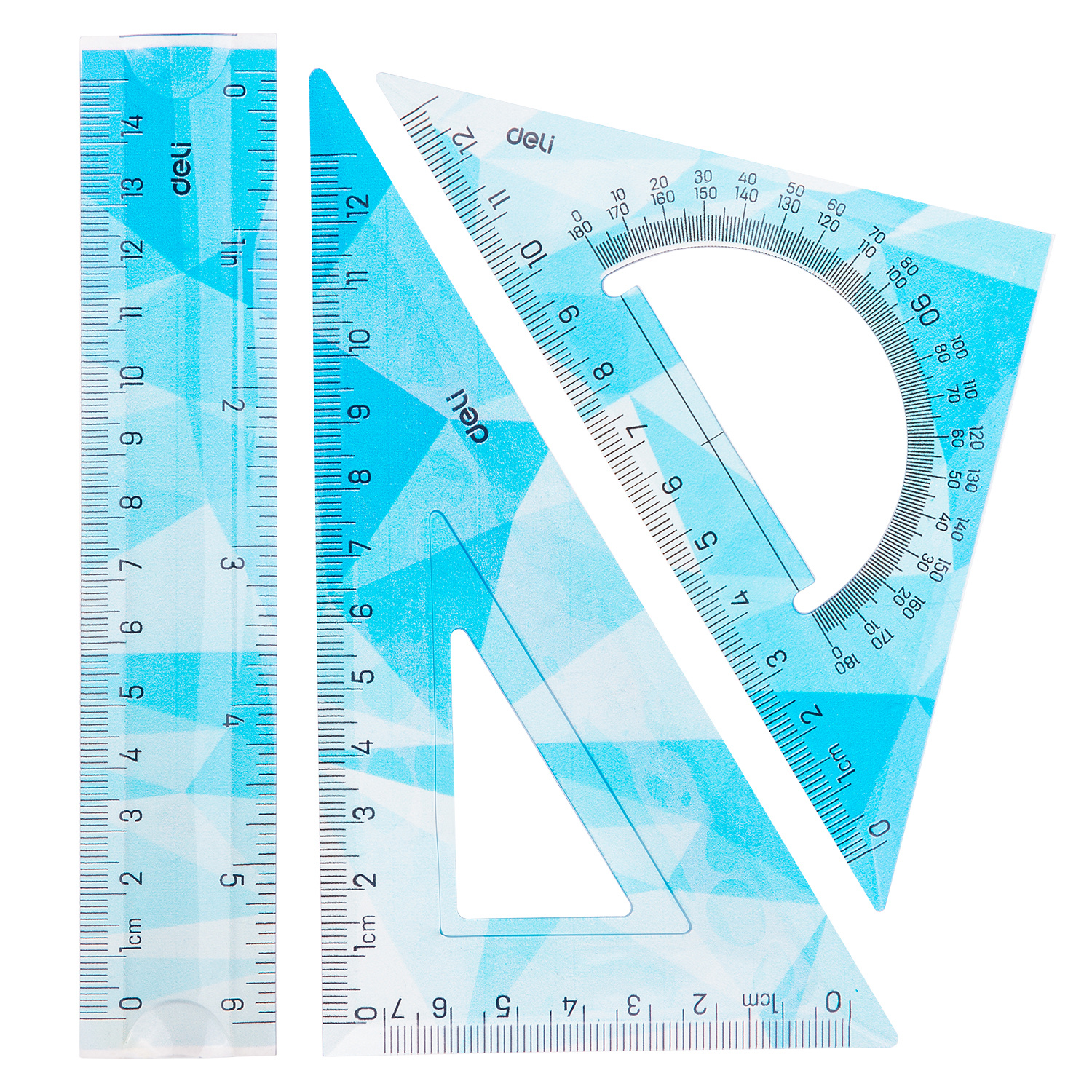 Набор линеек Deli EH649 пластик дл.15см ассорти компл.:лин.15см./треуг.2шт пластиковый пакет с европодв.
