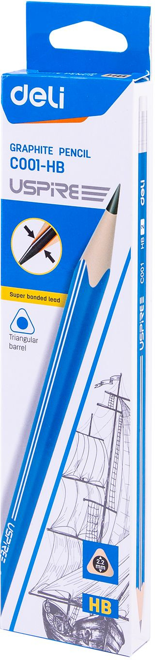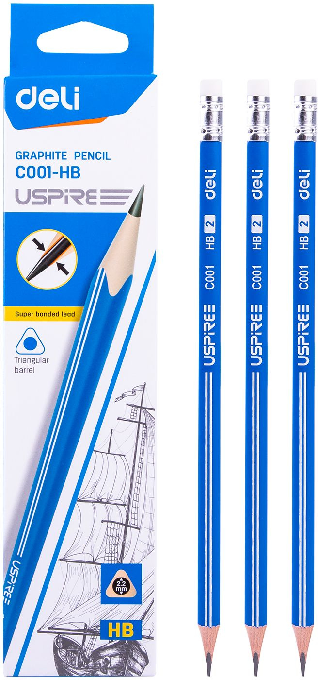 Карандаш ч/г Deli EC001-HB Uspire HB трехгран. тополь карт.кор. (12шт) ластик