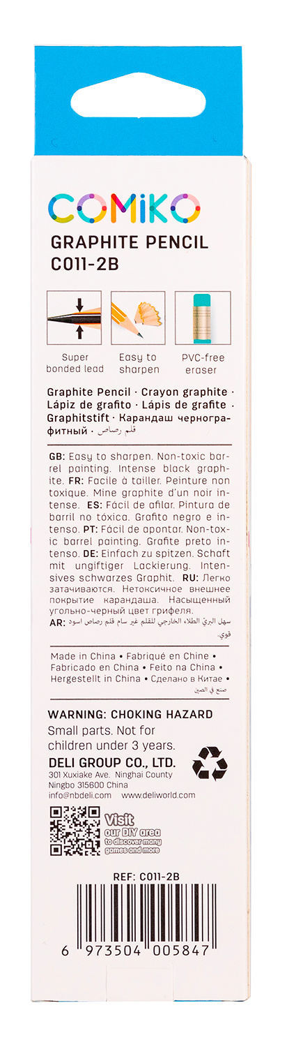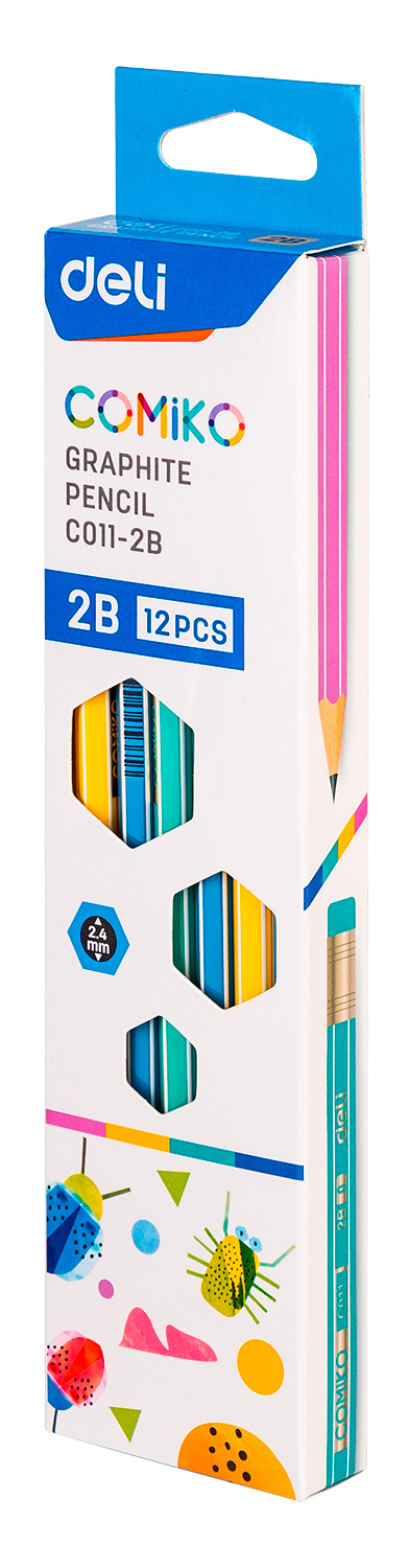 Карандаш ч/г Deli EC011-2B Comiko 2B шестигран. липа ассорти кор.европод. (12шт) ластик