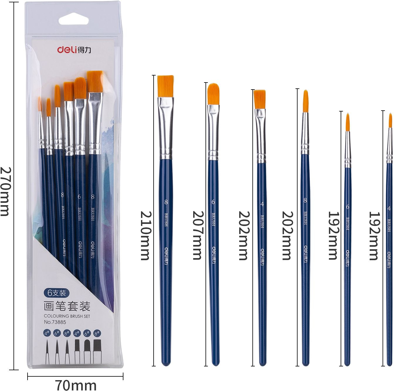 Набор кистей Deli 73885 нейлон (наб.6шт)