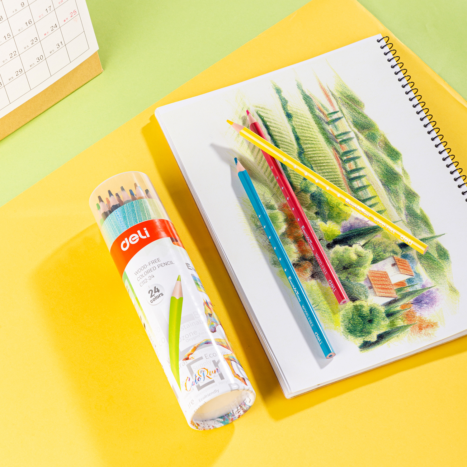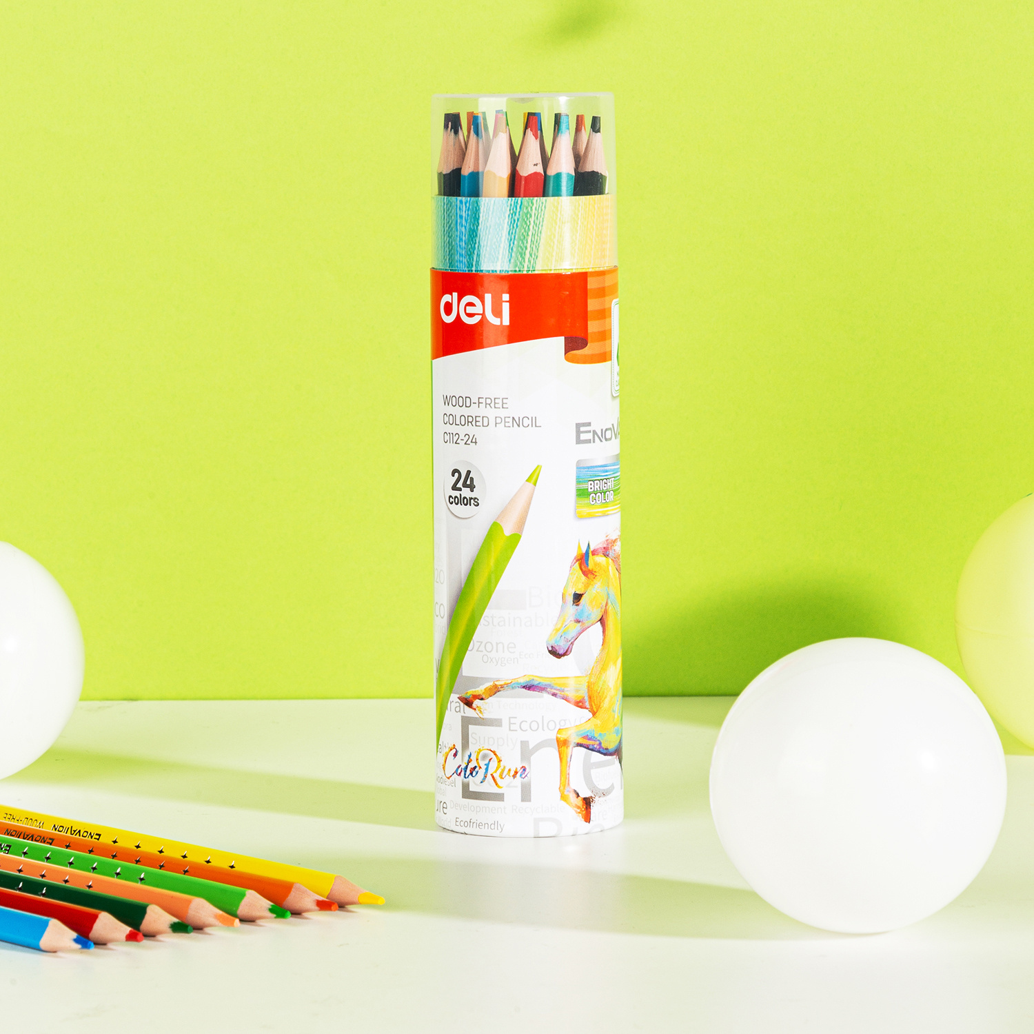 Карандаши цв. Deli EC112-24 Enovation трехгран. пластик 24цв. карт.тубус (24шт)