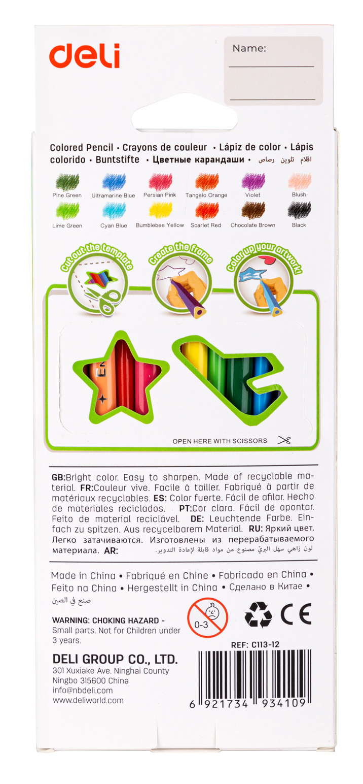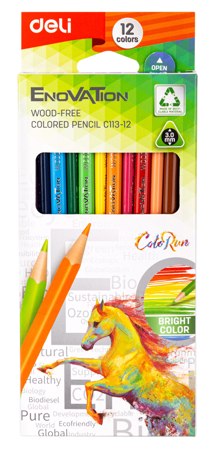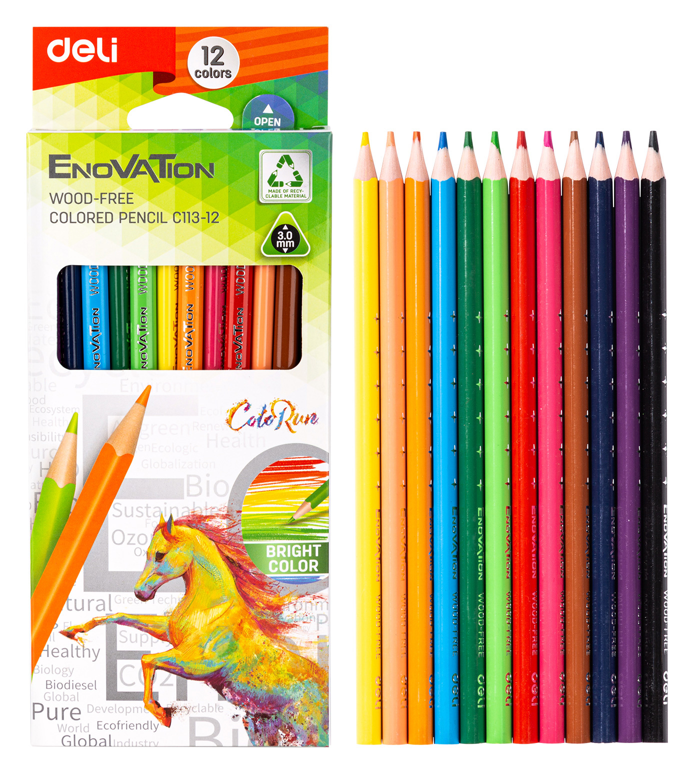 Карандаши цв. Deli EC113-12 Enovation трехгран. пластик 12цв. коробка/европод. (12шт)
