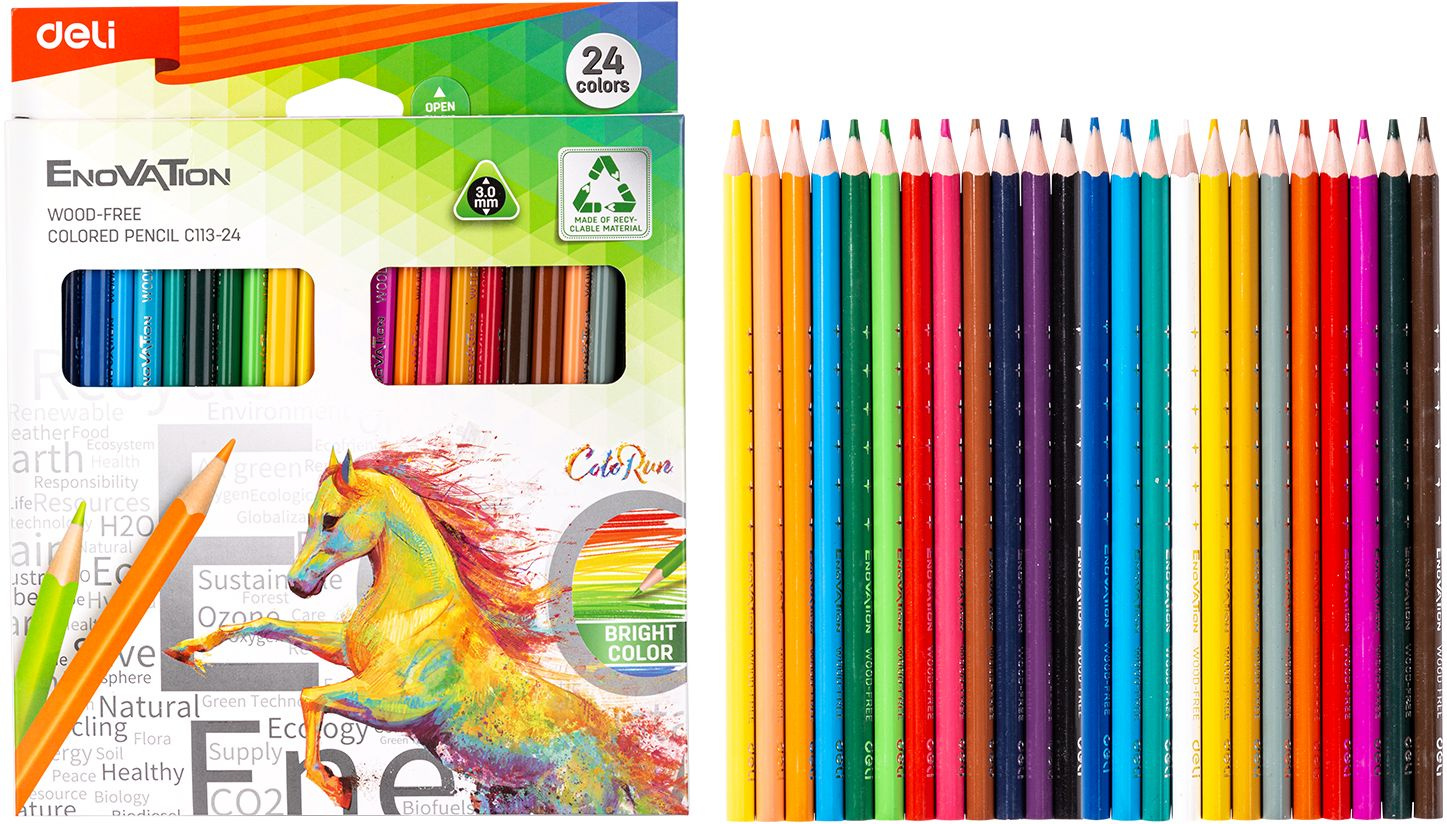 Карандаши цв. Deli EC113-24 Enovation трехгран. пластик 24цв. коробка/европод. (24шт)
