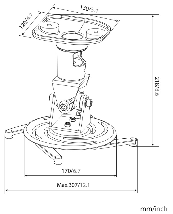 Кронштейн для проектора Cactus CS-VM-PR01-AL серебристый макс.10кг потолочный поворот и наклон