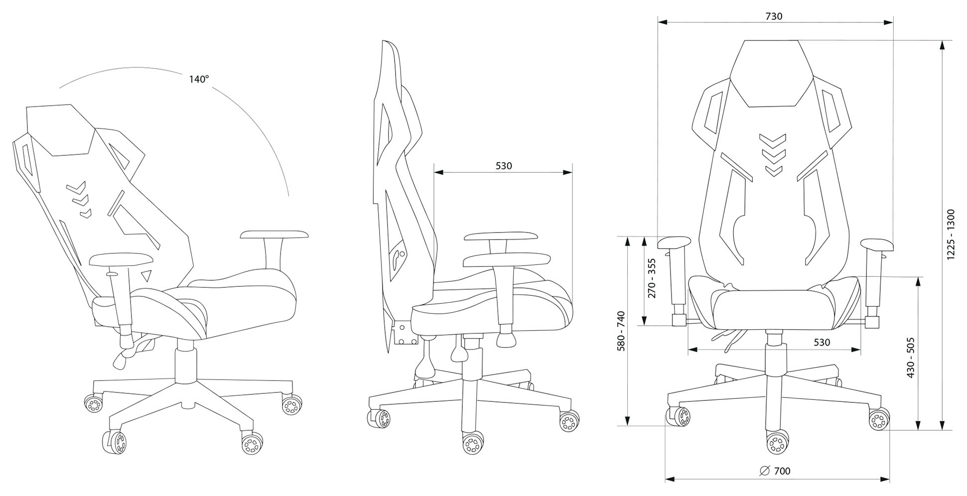 | Высота с подлокотниками MIN | 580 мм |